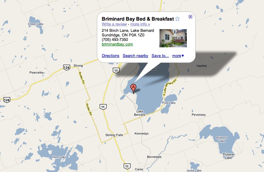Need direction to our fantastic “little” Bed & Breakfast on Lake Bernard in Sunny Sundridge?